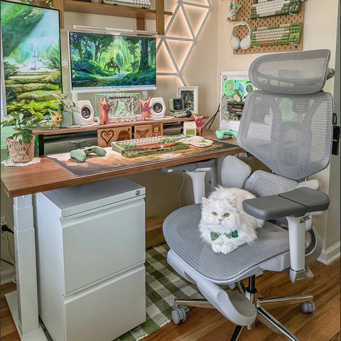The 𝐄𝐫𝐠𝐨 𝐂𝐡𝐚𝐢𝐫𝐬™ Chair features adjustable ergonomic components, including a 4D dual-axis adjustable headrest and 360° mechanical armrests. These adjustments allow users to customize the chair to their unique preferences and body dimensions, promoting proper posture and comfort throughout the day.
